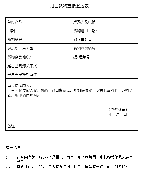 進(jìn)口貨物直接退運(yùn)表(模板)