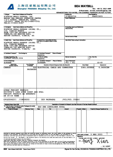 海運大提單(樣例)