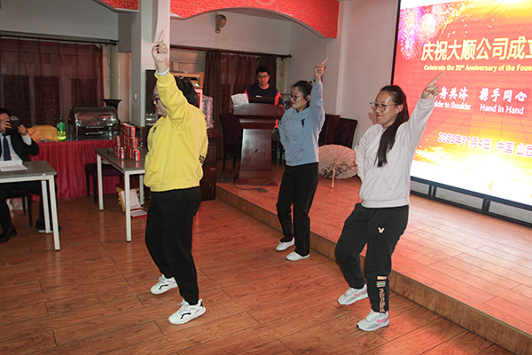 見證了王家大院的宏偉景觀后下午我們到了第二個景點平遙古城,到了平遙古城的小巷,公司依舊安排了當(dāng)?shù)刈罹咛厣牟宛^,大家吃過晚飯后到了最為關(guān)鍵的晚會環(huán)節(jié),各部門都為此次晚會做了精心準(zhǔn)備,首先是晚會的主持、然后是所有女生都參加的《舞蹈串燒》,監(jiān)管庫庫朗讀《我愛上班》,國內(nèi)部三句半《我們都是大順人》、啞劇《美麗女人》、新編黃梅戲《我們的大順》、小品《一切都是最好的安排》、歌曲《男兒當(dāng)自強》和《國風(fēng)走秀》等節(jié)目,大家都發(fā)揮了超常實力。