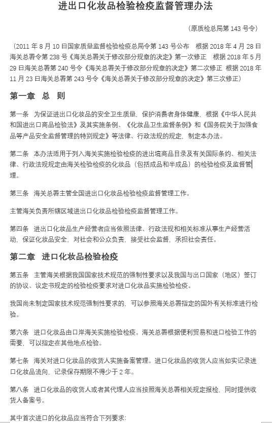進出口化妝品檢驗檢疫監(jiān)督管理辦法
