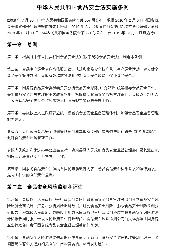 中華人民共和國食品安全法實施條例