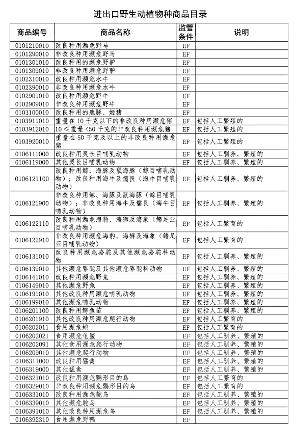 中華人民共和國瀕危物種進出口管理辦公室海關總署公告(2022年第2號)-附件(進出口野生動植物種商品目錄)