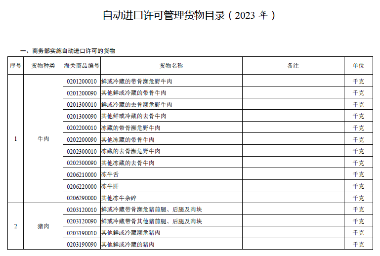 自動(dòng)進(jìn)口許可管理貨物目錄(2023 年)